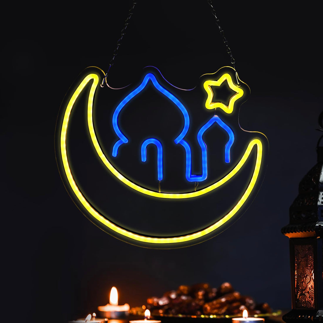 Moon Castle Neon Sign Ramadan Festival Lighted Window Decorations Neon Signs for Wall Decor Neon Sign Light for Home Bedroom Cafe Office Birthday Housewarming Gift Supplies