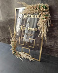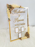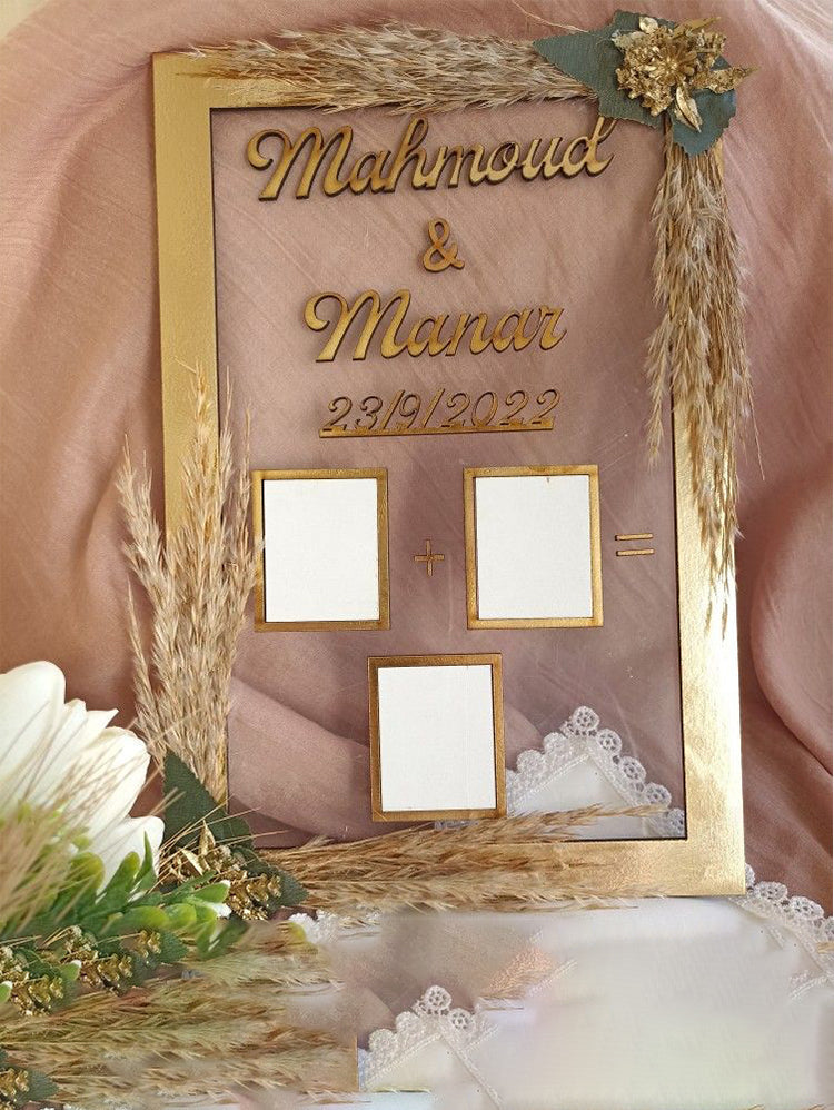 Celebrate love with this luxurious personalized acrylic wedding frame, a timeless keepsake for couples on their special day. Featuring custom names, date, and elegant design details, this frame is beautifully decorated with dried floral arrangements and a touch of golden accents, symbolizing elegance and everlasting love. The frame also includes photo slots, allowing you to add cherished memories for a truly personal touch.
