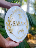 "Round Acrylic Sign Board with Golden Design – Customizable Logo/Name Plate"