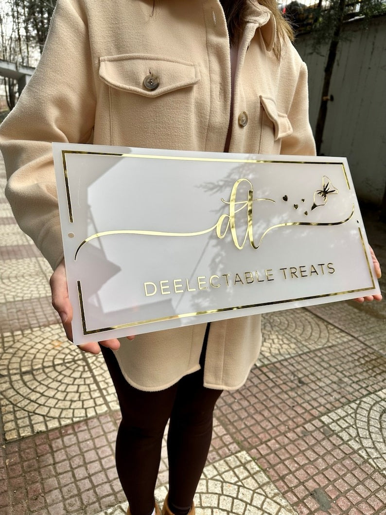 🌟Custom Acrylic Logo Sign with golden letter – Premium Branding for Your Space with golden letter