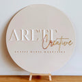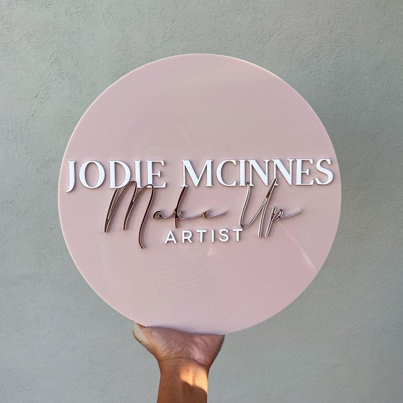 “Custom Round Acrylic Logo Sign – Elegant Personalized Business Sign with 3D Lettering for Salon, Studio, or Boutique”