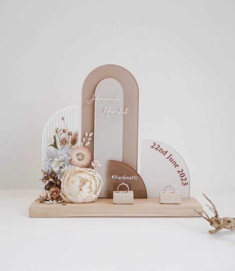 Personalized Acrylic Wedding & Event Name Plate – Floral Multi-Arch Design