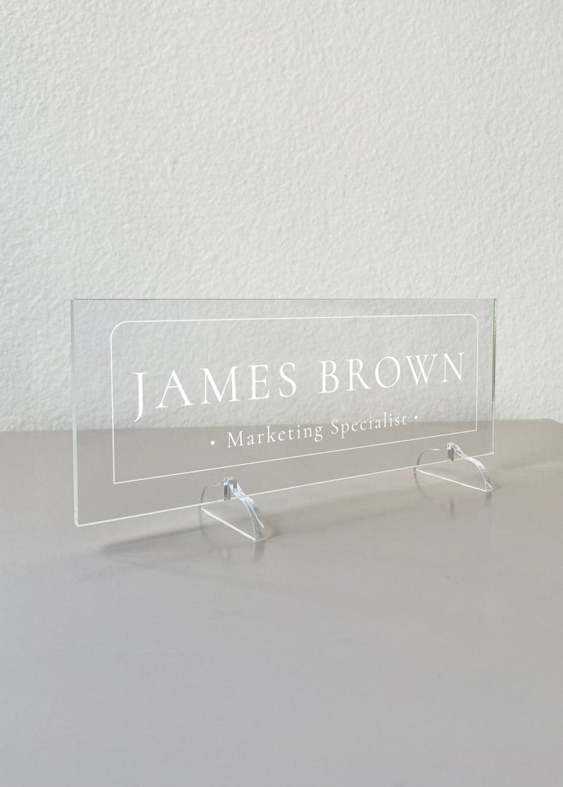 🌟 Clear Acrylic Desk Name Plate – Office & Personal Branding