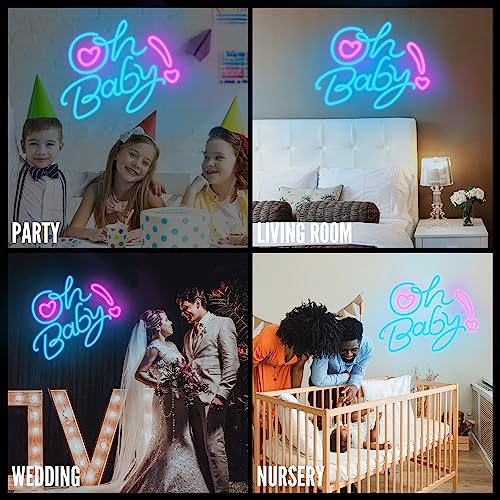 - ???Exquisite gift?Our oh baby led lights sign helps liven up any dull space with the radiance of the neon lights and make the perfect center of attraction at the party. Perfect for baby shower decorations, gender reveal & first birthday favors, birthday party, wedding decor, home decor, bedroom wall, kids room, restaurant etc.