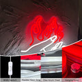 - ??Unique Design?Holding a red burning flame in hand and designed in style, this neon sign will look great in your living room, game room, or store office. Bright and gorgeous, light up your artistic life.