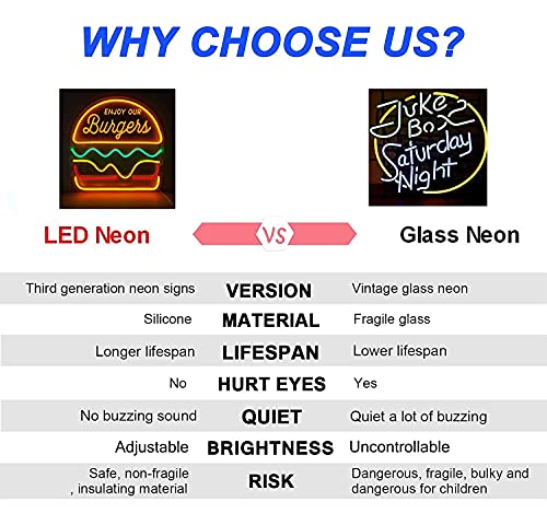 - ???Wide Application?This advertising hamburger neon light will be a perfect addition to home bar, shop business, pub, food shop, man cave. Create special atmosphere to birthday, party, kitchen, restaurant, cafe, window, garage wall, store. This hamburger sign is a perfect gift for your family, friends, business.