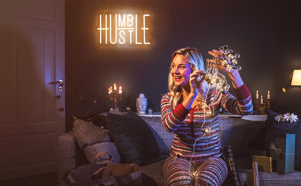 - ? [ Included Components]: 'Hustle ' NEON BOARD, BRIGHTNESS CONTROLLER, 12V 2A Adaptor, Size 16 x 10 inches