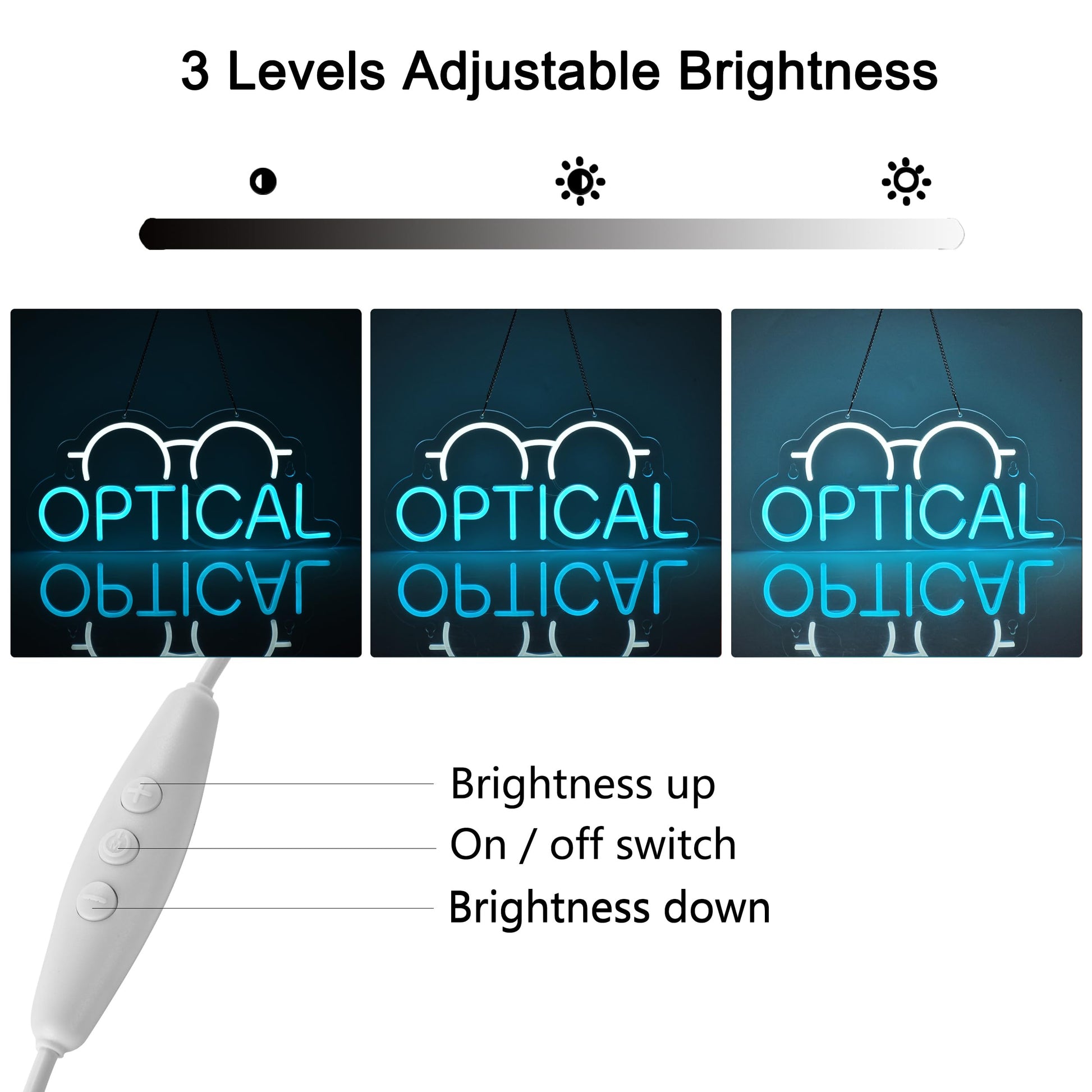 - Eye-catching Design: The optical neon sign combines words and eyeglasses design with adjustable brightness levels. With its exquisite pattern and vibrant colors, it grabs attention and makes the perfect storefront decoration for your business.