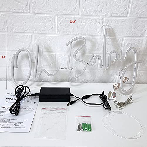 Details: Color: White-Oh Baby About Us: The most popular in modern times is the neon sign! Based on the widespread use of neon signs, we feel that we must start a new trend and catch up with the young! Fashionable neon lights are popular among children and adults, and they often add a lot of lively and colorful colors to some parties, gatherings, and festivals. So, we started! Feature: The power switch has three buttons. The middle button controls the light, and the left and right buttons can be used to quickly adjust between 10% and 100%. After the party is used, it can be packaged and sealed or used in the bedroom, living room night light, atmosphere light, recycle and multi-use. It can be used again at the next party or holiday. This product can be used for wall display, or just put it on a table, shelf, bedside table or dressing table in any flat position. This product can be used with other ornaments and accessories, or it can be used alone for a versatile match. If used for a long time, the neon light will not heat up, it is very safe and quiet. Specification: Name: Oh Baby Neon Light color: White Material: transparent acrylic, LED neon light Size: 23.5×11.8 inches Switch mode: on/off/dimming (10%-100%) Power supply: DC12V adapter The package includes: product manual, 1PCS label, 1PCS cable with dimmer (106''/270cm), 1PCS crystal cable (100cm), 4 expansion screws, 4 fixing screws Note: If you use neon lights outdoors, please don't let water splash on them.