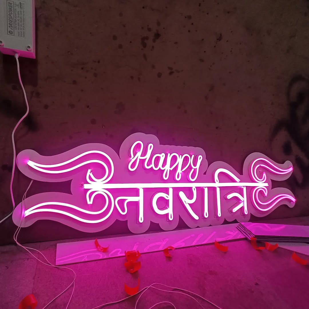 LED Neon Sign Board – Happy Navratri Wall Decor