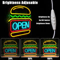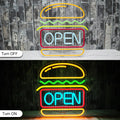 - ?Eye-Catching Neon Open Sign?The combination of open and hamburger shape creates a mesmerizing glow that instantly grabs attention. Whether you want to attract customers to your business or add a pop of color to your store decor, Hamburger open neon signs is the perfect idea.