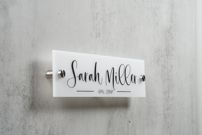 Personalized Acrylic Wall & Door Name Plate with Hardware Included. Made Exclusively by Garo Signs.