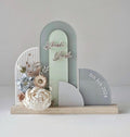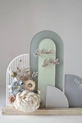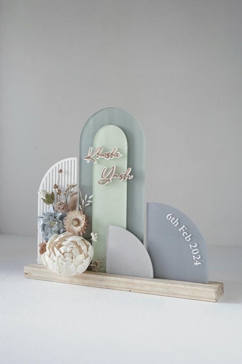 Make your special day unforgettable with this elegant personalized acrylic name plate, designed in a modern multi-arch style with delicate dried flowers. Perfect for weddings, engagements, anniversaries, and home décor, this piece adds a timeless charm to your memories.