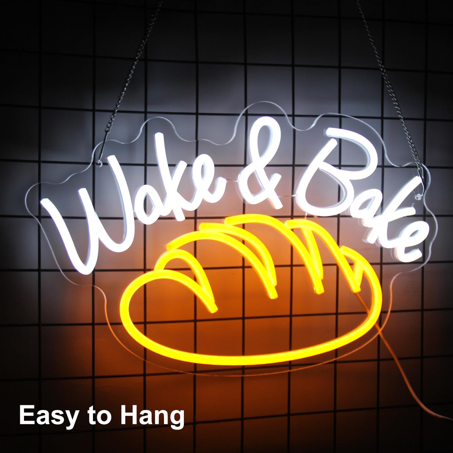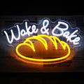 - ?Bread Neon Sign?This neon sign for wall decor is composed of a piece of yellow bread and the white letter 'Wake & Bake'. Eye-catching neon lighting and beautiful design is sufficient to attract the attention of guests.