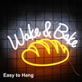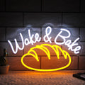 - ?Bakery Room Decor?Wake & Bake neon LED sign is definitely a good choice to decorate bedroom, kitchen, restaurant, bake house, bakery, cafe, dessert shop or birthday party, etc. It is also an exquisite gift for bread enthusiasts.