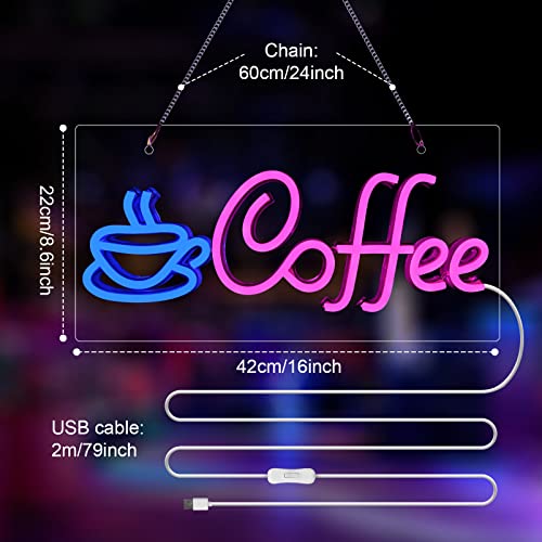 - ?Easy to Use? There are two pre-drilled holes on the acrylic panel of the coffee led sign.Hang it at any smooth surface with the adjustable metal chain and hooks (included). The neon coffee signs is controlled by switch and don't have to plug out the USB cord to turn it off.