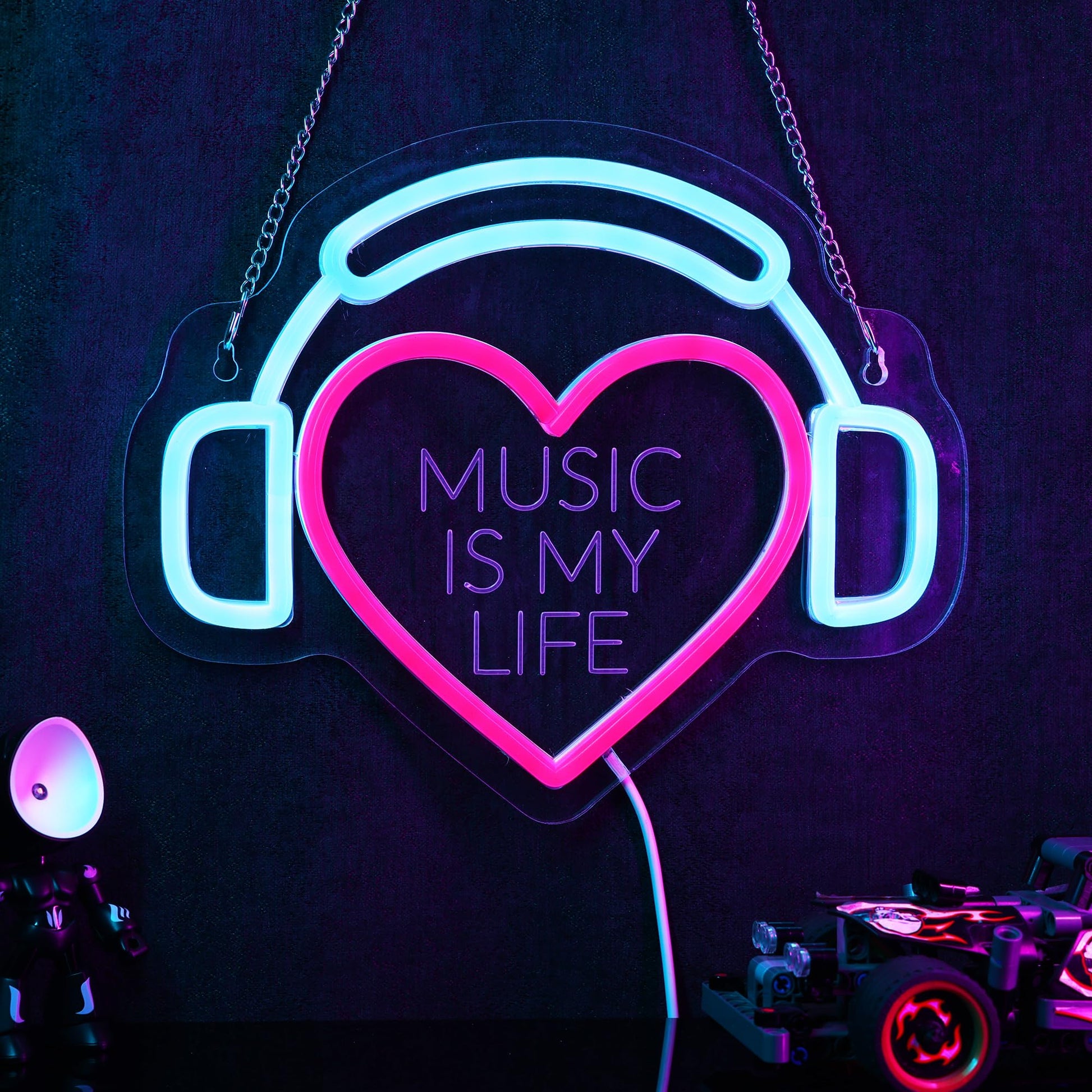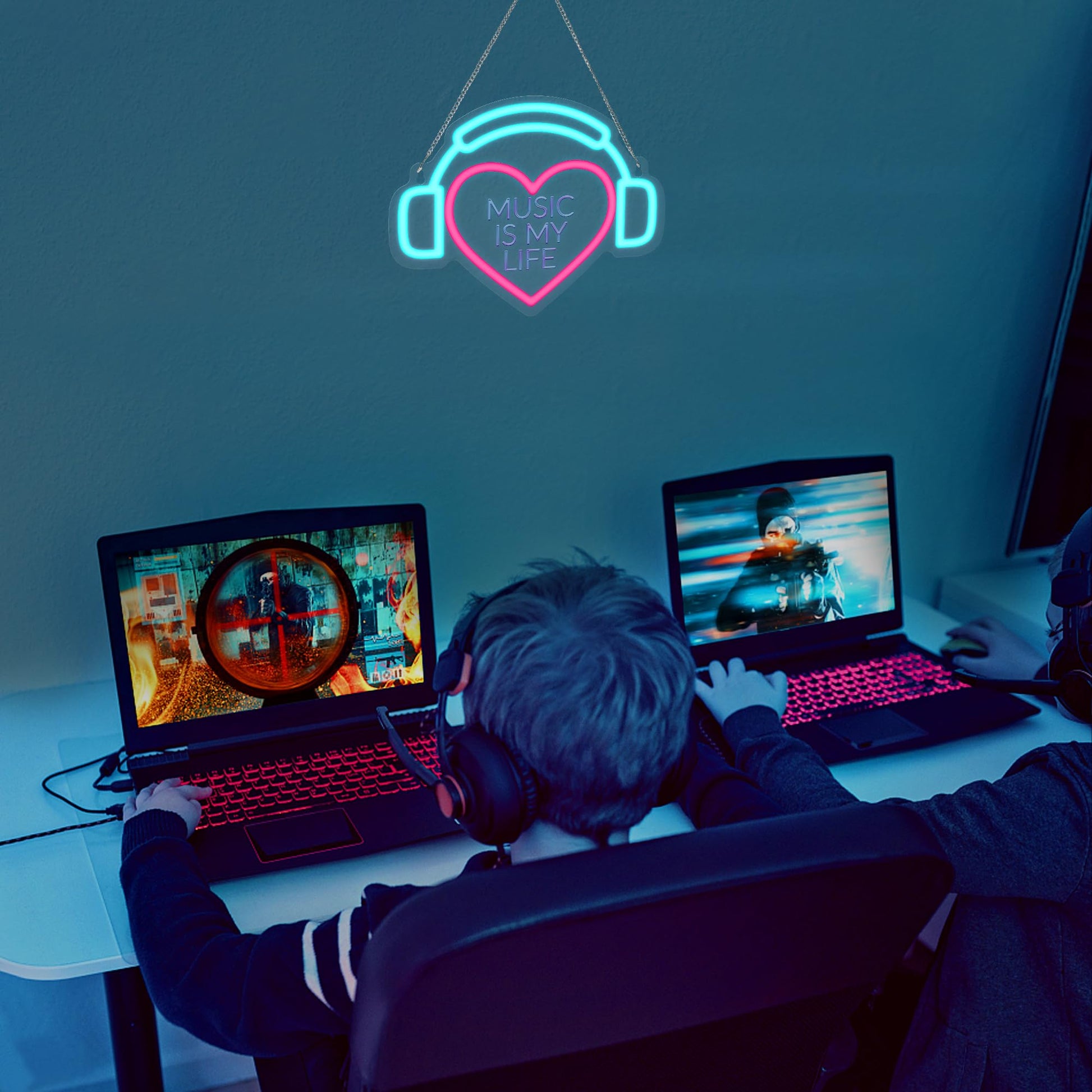Headset Neon Sign (MUSIC IS MY LIFE)